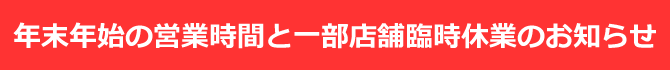 年末年始の営業時間と一部店舗臨時休業のお知らせ