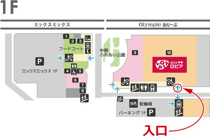 ※開店前に予約受付をお待ちになる場合は、1階ロピア側の入口(下図参照)を先頭にして順番に並んでお待ちください。開店時刻になりましたら会場へ誘導いたします。
