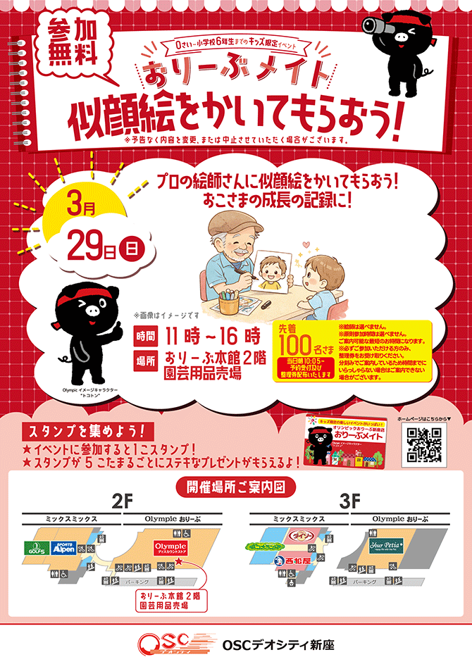 【3月29日(日)開催】おりーぶメイト「にがおえをかいてもらおう!」