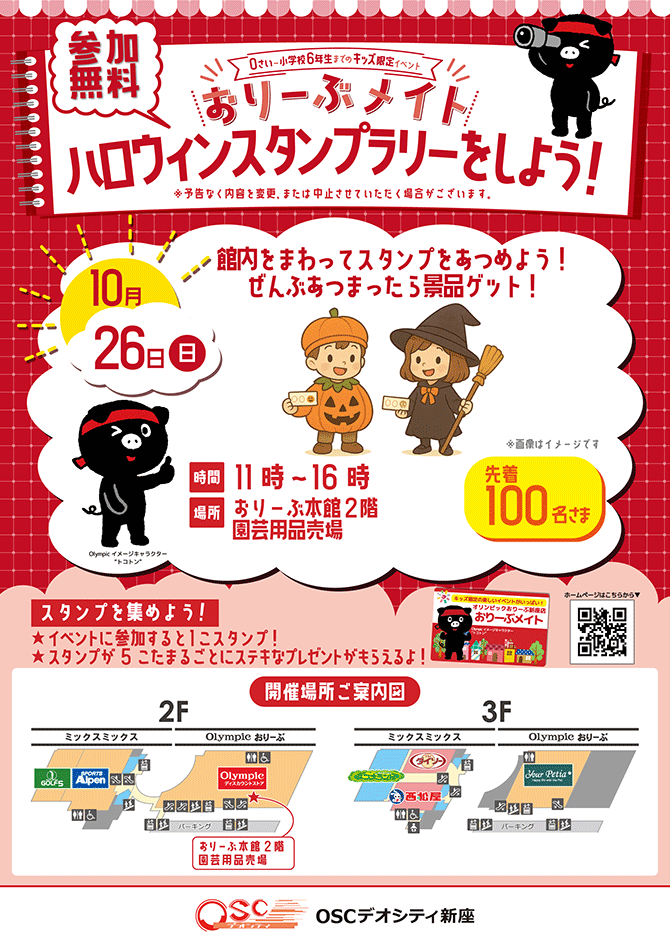 小学生までのキッズ限定イベント・おりーぶメイト、次回は「ハロウィンスタンプラリー!」を開催!