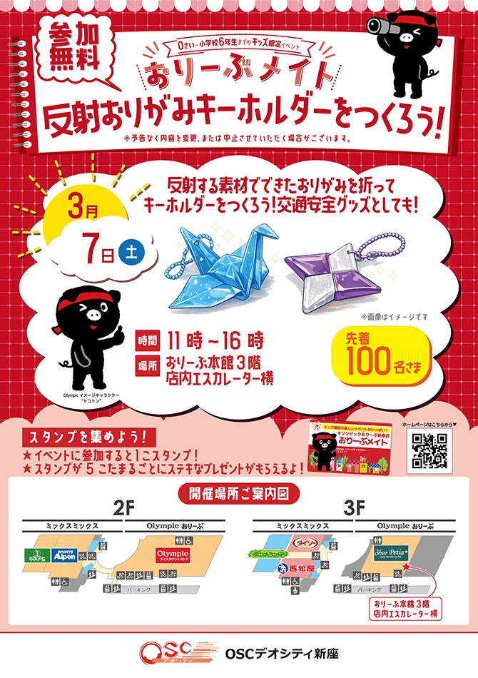 【3月7日(土)開催】おりーぶメイト「反射おりがみキーホルダーをつくろう!」