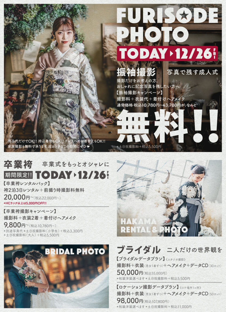 【12月26日(金)まで】写真で残す成人式≪振袖撮影キャンペーン≫