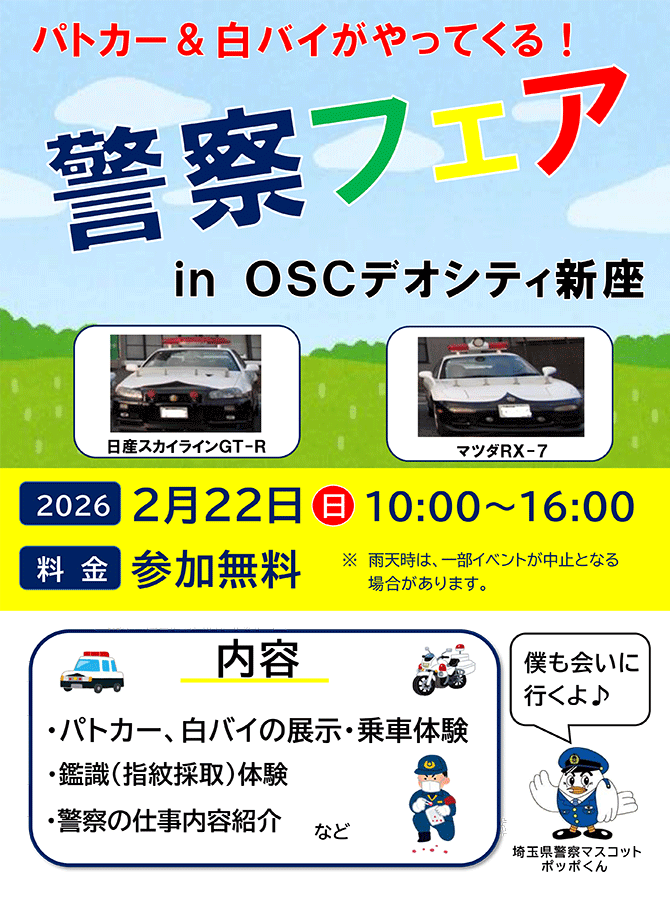 2月22日(日)、新座警察署≪警察フェア in OSCデオシティ新座≫開催!
